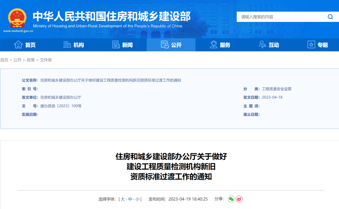 4月23日,住建部官網(wǎng)發(fā)布了對(duì)《建設(shè)工程質(zhì)量檢測(cè)機(jī)構(gòu)資質(zhì)標(biāo)準(zhǔn)》的解讀(文末附全文),《資質(zhì)標(biāo)準(zhǔn)》主要修訂了以下內(nèi)容: