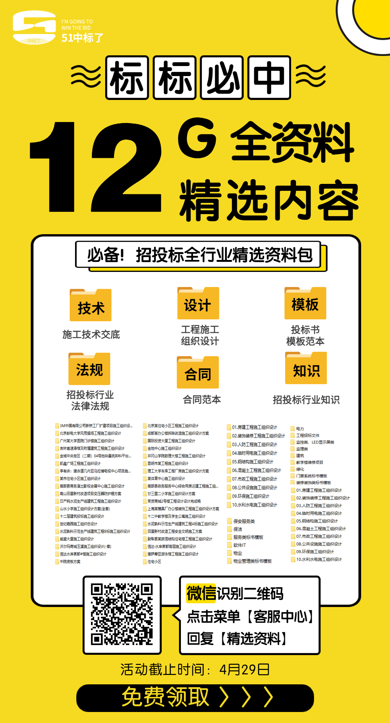 近期公司旗下“51中標(biāo)了”產(chǎn)品有免費(fèi)活動(dòng)開展,有需要相關(guān)招投標(biāo)資料的小伙伴們趕緊來參與獲取資料吧!
